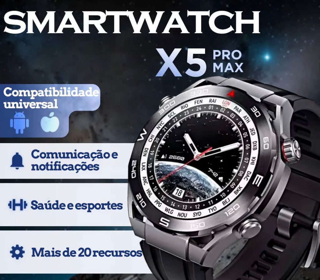 Descubra o novo W&O X5Pro Max, o smartwatch ideal para quem busca tecnologia, praticidade e elegância em um só dispositivo.